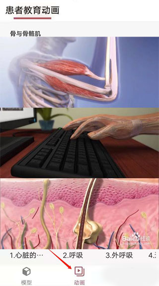 2. 进入主界面后,点击“模型”区域。系统基于人卫版《人体解剖学》教材,划分了系统解剖、局部解剖、肌肉动作等多个板块,用户可根据学习目标自由选择;