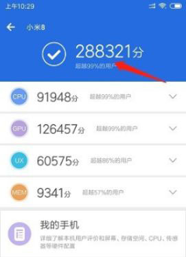 3、等待安兔兔跑分测试完之后,我们就可以看得到我们手机的跑分情况了。