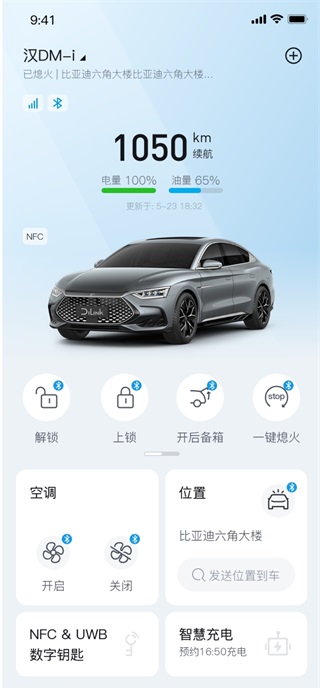 在“爱车”页面中,若蓝牙控制开关处于关闭状态,系统将默认启用云钥匙功能,点击即可远程操作车辆。