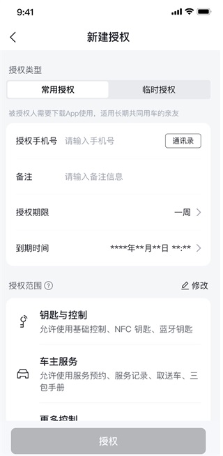 具体授权能力以您的车辆配置及App当前版本为准,请确保使用最新版应用以获得完整功能支持。