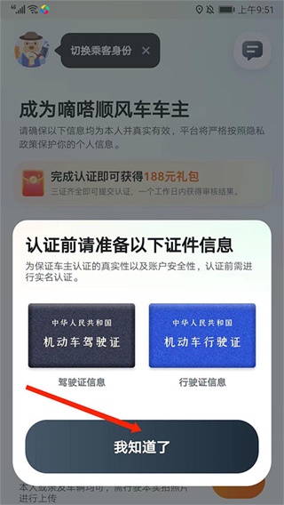 3. 阅读认证须知后,点击“我知道了”继续。
