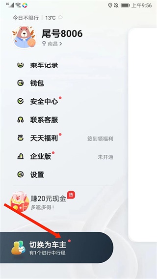 5. 审核通过后,返回用户中心即可看到“切换为车主”按钮,标志着你已成功加入嘀嗒顺风车车主行列。