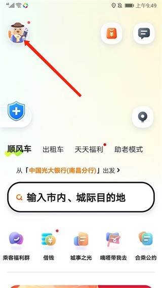 1. 打开嘀嗒出行App,点击右上角“头像”进入个人中心。