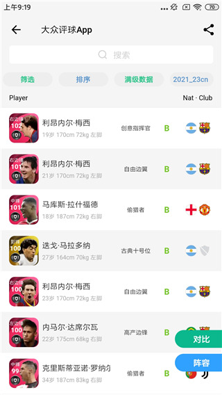 4. 专为足球迷设计,手机端即可高效查看、比较球员能力值;