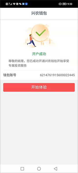 - 钱包申领成功后,点击“开始体验”即可使用“兴农e钱包”进行农产品等交易支付。