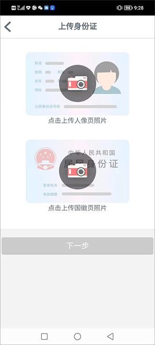 - 按要求拍摄并上传身份证正反面照片,上传前请仔细核对个人信息是否准确无误。