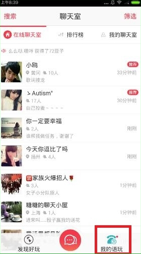 1、进入APP主界面,在聊天室页面点击【我的】选项