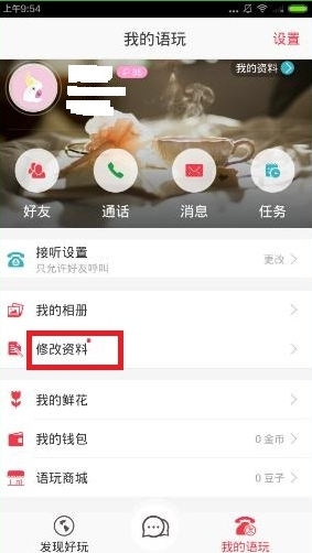 2、在个人中心页面选择【修改资料】功能