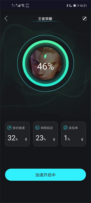 3. 选择目标游戏(如《王者荣耀国际服》),点击“本地加速”,应用会创建一个专用的虚拟网络通道,随后直接启动游戏即可进入加速状态。