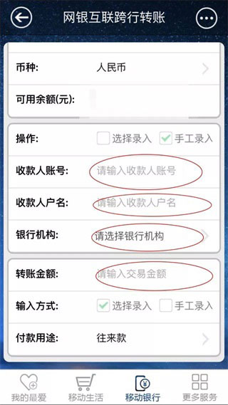 6. 他行账户余额联动查询 在授权前提下,用户可通过“他行账户余额查询”功能,使用本行指定账户查看已签约的他行账户余额,实现跨行资金统一管理。