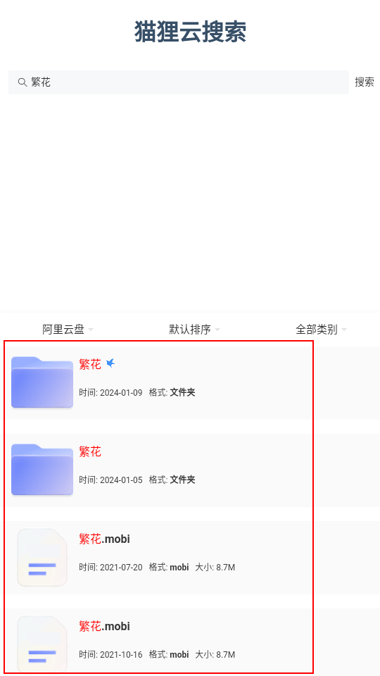 1、跨平台资源整合:通过输入关键词,狸猫云搜索能够迅速整合主流云存储平台上的各类文件信息。