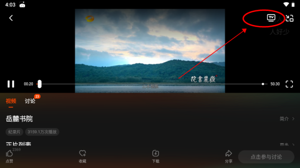 3. 点击视频画面任意位置,唤出控制栏,点击右上角的投屏图标;