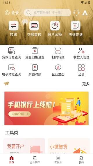1、在本站下载并安装农发企业银行app,打开后使用企业账号登录。