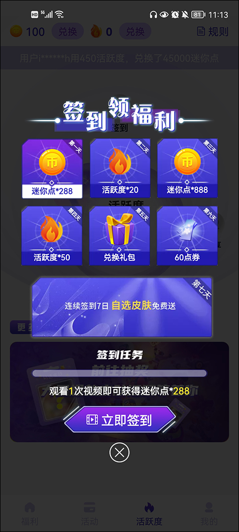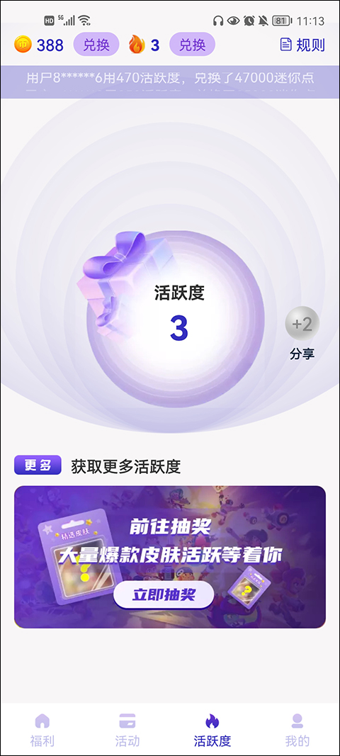 5、每日登录提升账号活跃度,通过签到、分享或抽奖等方式积累活跃值,解锁更多高价值皮肤兑换资格;