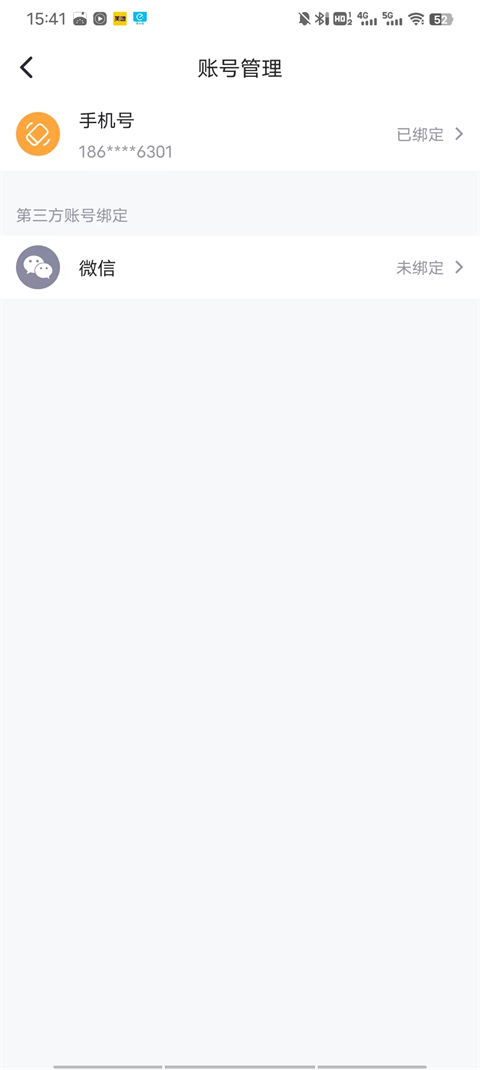 2、在设置菜单中选择【账号管理】,然后点击【微信】选项。