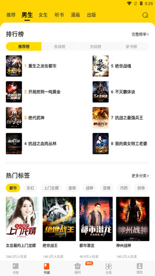 2、书城首页智能推荐各类精品小说,热门榜单与编辑精选助你快速发现好书。