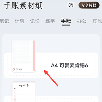 2、分类是非常细致的,分为笔记、记忆、练字、办公等多个版块,每个版块里提供多种素材纸。
