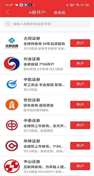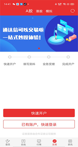 1、首次打开APP,新用户可快速完成券商开户流程;
