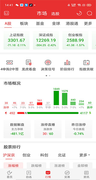 4、行情板块覆盖A股、行业板块、基金、全球市场及港股通,数据全面更新及时;