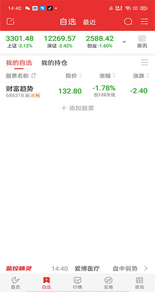 3、自选股页面支持个性化管理,实时跟踪持仓与关注标的;