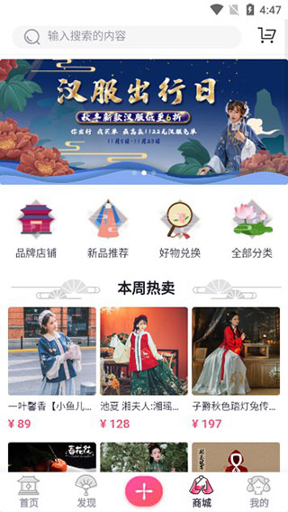 4、此外,在商城界面可以看到一些汉服的品牌店铺和新品推荐等,用户可在这里进行选购;