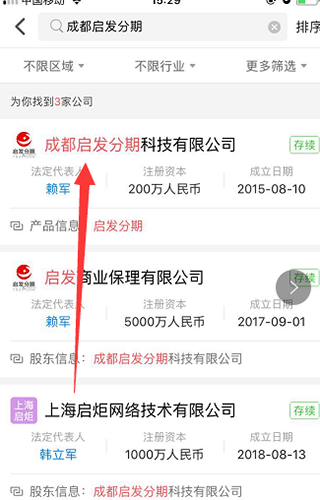 - 系统将自动列出相关企业列表,点击选择目标公司;