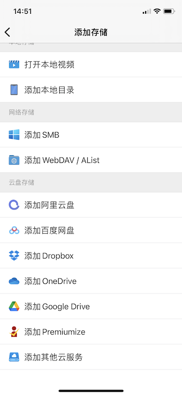 2.2 云盘接入:目前支持阿里云盘、百度网盘、Dropbox、OneDrive、Google Drive、Premiumize 等,具体操作参见新手入门;