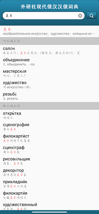 1、打开应用后,在顶部搜索框中输入俄语或汉语词汇即可开始查询。