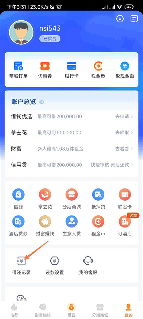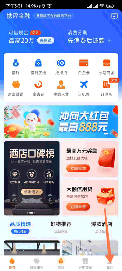打开携程金融App,点击底部导航栏中的“我的”,进入个人中心页面。