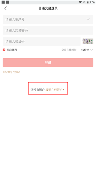 1. 使用手机号获取验证码登录App,点击首页“极速在线开户”按钮;
