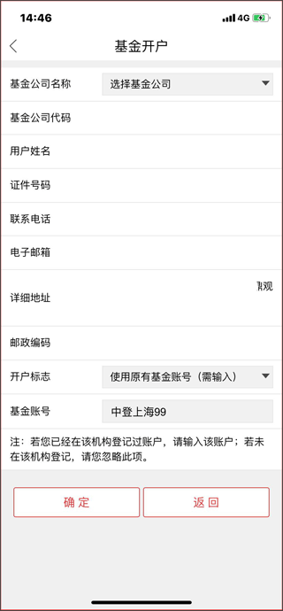 第一步:确认是否已开立场外TA账户。若转入粤开证券场外,请在App内【场外基金】-【基金开户】中选择上海或深圳登记结算公司开户。已有TA账户的用户需选择“使用原有基金账号”,并输入以98或99开头的中登TA账号。