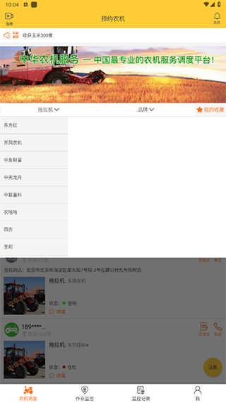 2、在“农机调度”中,可根据实际需求选择所需农机类型,精准匹配作业场景。