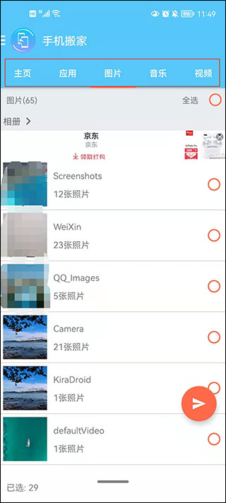 数据传输剩余时间贴心提示,搬家进度一目了然。