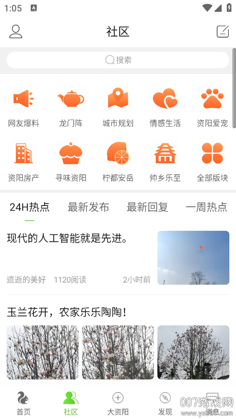 2. 点击【社区】,浏览分类清晰的本地新闻与话题讨论。