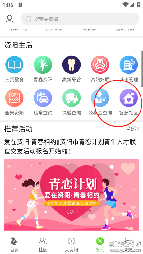2. 向下滑动页面,找到并点击【智慧社区】入口。
