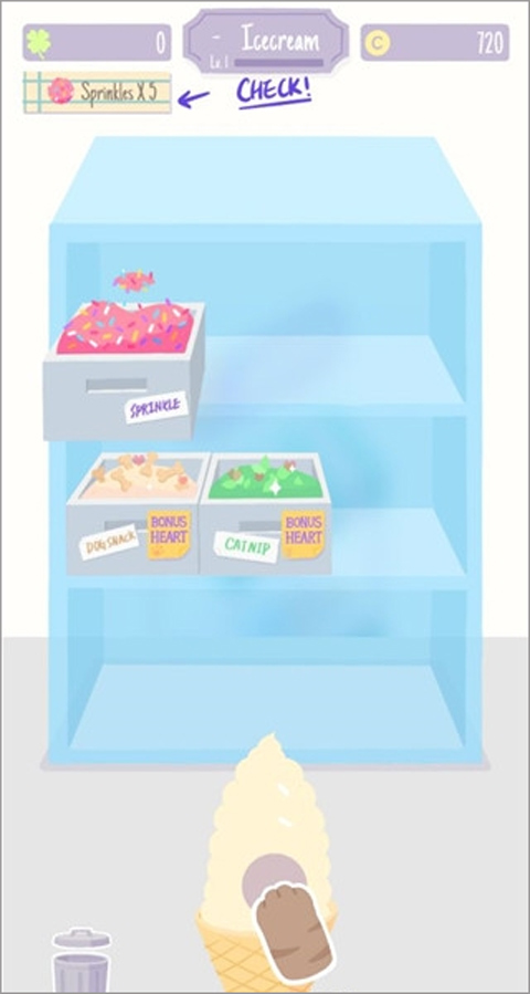 在Sundae Picnic中,你将在风景如画的公园里运营一家移动冰淇淋餐车。面对络绎不绝的猫猫狗狗顾客,你需要根据它们的个性化订单,灵活搭配口味与配料——从经典香草、浓郁巧克力到清新抹茶、甜美草莓,再点缀彩虹糖粒、巧克力脆片、威化棒或樱桃顶饰,每一杯都是独一无二的甜蜜创作。精准满足需求不仅能赢得喜爱,还能积累金币与好感度,推动剧情与内容解锁。