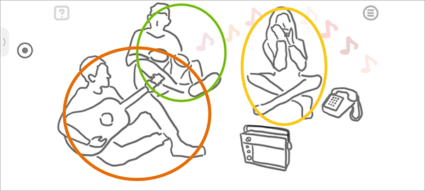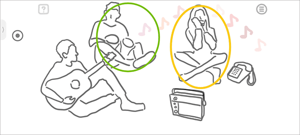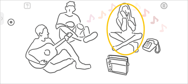 再点击音响和手机之后,第一个吹口笛的小姐姐一共出现了7中音符所以排序1234567.