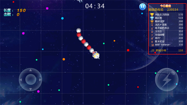 3、进入游戏后,玩家可以在左上方看到角色的长度和击败敌人数量。