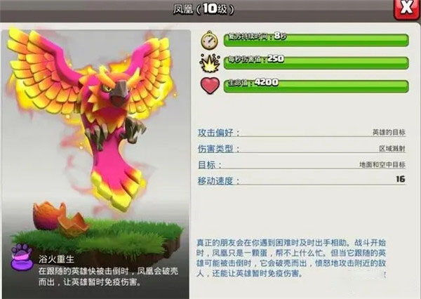 随着大本营等级提升,战宠系统成为制胜关键。14本推荐搭配:莱希(无视城墙,配合蛮王突进)、闪枭(连锁电击,适配永王/蛮王)、大耗(专攻城墙,狂怒爆发)、独角(英雄专属治疗,守护女王或永王)。升级至15本后,解锁冰牙(召唤冰怪清防)、地兽(钻地瘫痪建筑)、猛蜥(毒雾削弱援军)与凤凰(英雄濒死免疫+溅射),可针对不同阵型灵活组合,极大提升进攻效率。