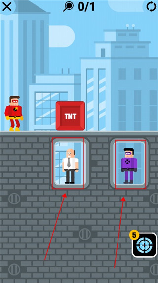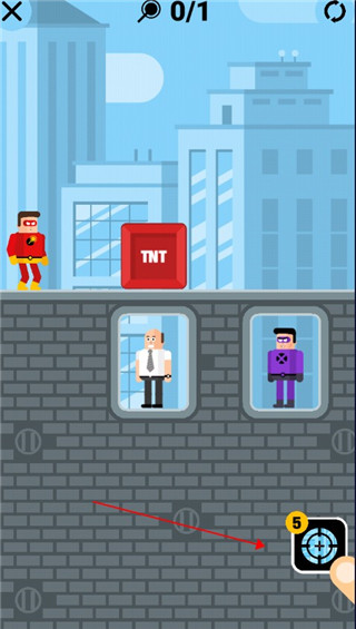 游戏以策略与操作结合为核心,每一关都考验你的观察力与应变能力。你需要在有限条件下,巧妙利用场景中的物体和自身超能力,精准消灭劫匪,安全解救左侧的人质。敌人会不断逼近,而你的能力可能被障碍物阻挡,因此必须审时度势,选择最佳出手时机。