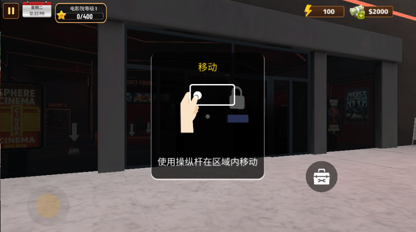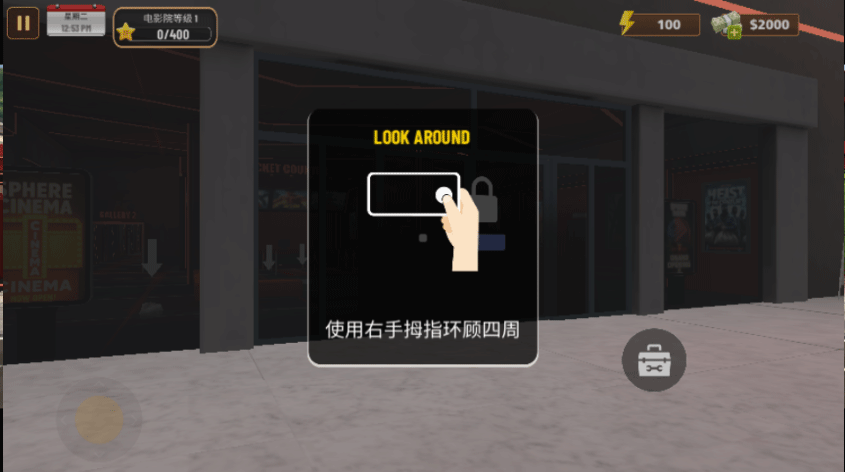 5、首先点击大门上的锁图标,正式开启你的影院;