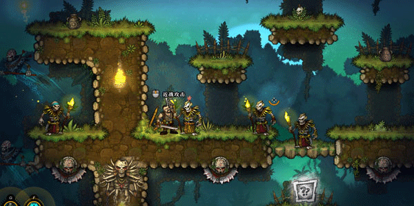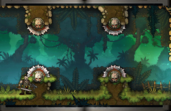 故事始于亚马逊丛林,古老恶魔苏醒,英雄踏上征途。初期操作简单直观:A/D移动、空格跳跃、S下蹲、左键射击、R换弹、右键冲刺、中键触发近战攻击。面对机关如双锯齿陷阱,可先跳跃再空中冲刺轻松越过。敌人击败后会掉落金币与黑墨——金币用于商店购买补给或回血,黑墨则用于升级角色能力。