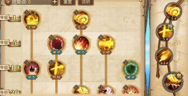 1级技能优先选择火拳,因其具备四格直线攻击范围,配合后续状态技能可附加额外火属性伤害;火达摩仅需点前置即可。5级技能中,攻击强化与火属性伤害必须点满,镜火焰仅点前置。10级技能建议将十字火点满,点燃和防御强化视情况取舍。20级时,奥义“大炎戒”与火属性强化务必点满,灼烧仅点前置。30级技能中,优先点满十字火的灼烧状态与炎浪,神火不知火虽可点满但收益较低,不建议主投资源。