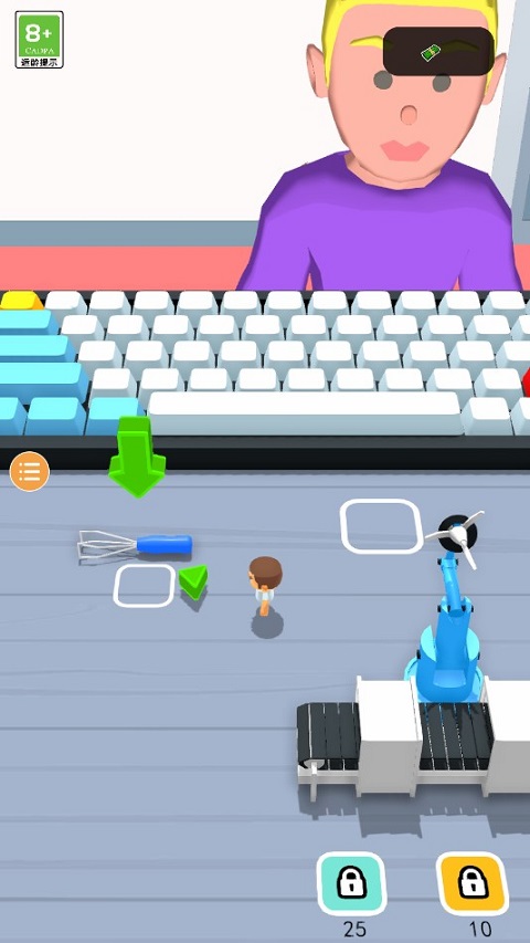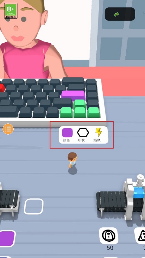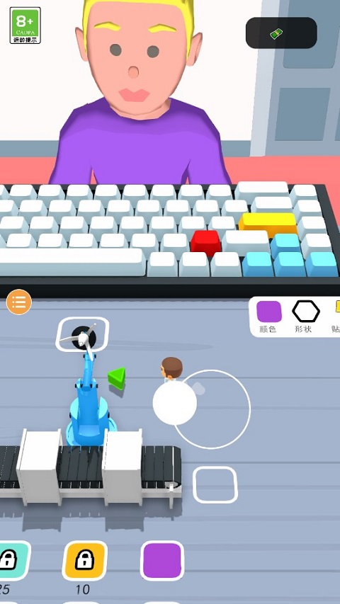 进入游戏后,通过滑动屏幕操控虚拟摇杆,灵活移动角色至指定工作区域。绿色箭头会清晰指引任务目标,帮助你快速定位操作位置。根据顾客需求面板上的具体说明,依次完成按键着色、塑形与贴图三大步骤,即可交付令人满意的成品。
