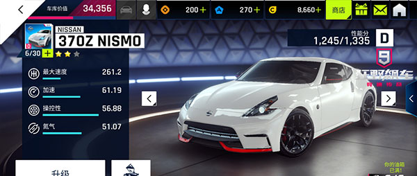 日产 370Z NISMO 在第一章限时赛事与生涯模式中表现优异,操控性与性能分均衡,是赚取蓝图、金币等关键资源的理想选择,值得重点培养。