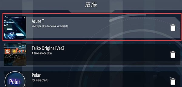 进入皮肤选择界面后,你会看到多个英文命名的皮肤样式,例如“Azure T”。点击任意一款即可预览效果。