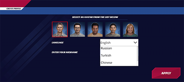 1、打开游戏后,在语言选项中选择“Chinese”,如图所示:
