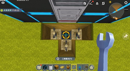 困人牢笼陷阱制作:仿建家园外观,门前铺设感压板,下方挖深坑埋设火药桶或发射装置,通过蓝色电能线连接推拉机械臂。当玩家踩上感压板,机械臂升起困住目标,随即引爆造成淘汰。