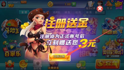 在弹出页面中点击“立即注册”,成功后将自动获得金币奖励;