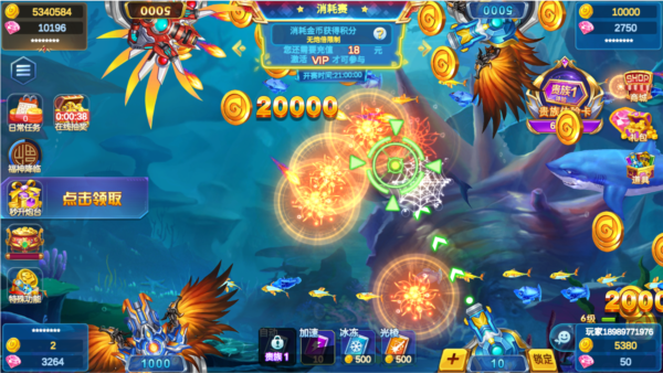 高级渔场:高级渔场是高手云集之地,这里汇聚了大量高分值的大鱼和 BOSS 鱼,如黄金鲨、机械蟹王、龙王鱼等 。这些鱼类不仅分值高,而且具有强大的防御能力和快速的游动速度,捕获难度极大 。高级渔场的炮台倍数从 200 倍起,最高可达 9999 倍,玩家需要具备充足的金币储备和精湛的捕鱼技巧,才能在此场景中立足 。例如,在高级渔场中,玩家需要密切关注 BOSS 鱼的攻击模式和行动轨迹,结合高倍炮台和强力道具,才能有机会成功捕获它们 。